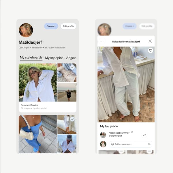 Upload images, tag products, and create styleboards to be shared with other users, fully integrated in the e-commerce site.